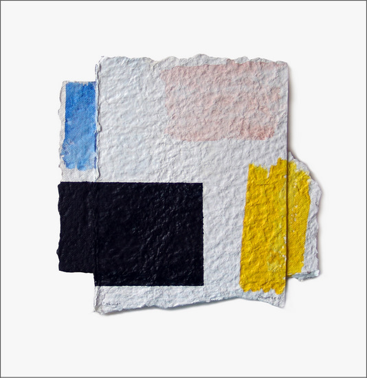Construcción en papel hecho a mano y pintado al óleo encolado a tabla