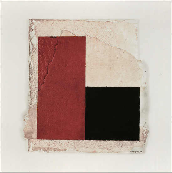 Construcción en papel hecho a mano y pintado al óleo encolado a tabla- 114 x 104 cm