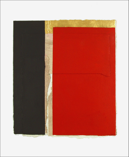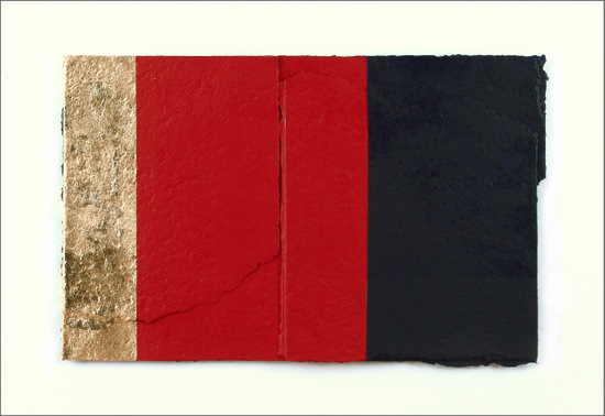Construcción en papel hecho a mano, óleo y pan de oro sobre tabla- 81 x 100 cm