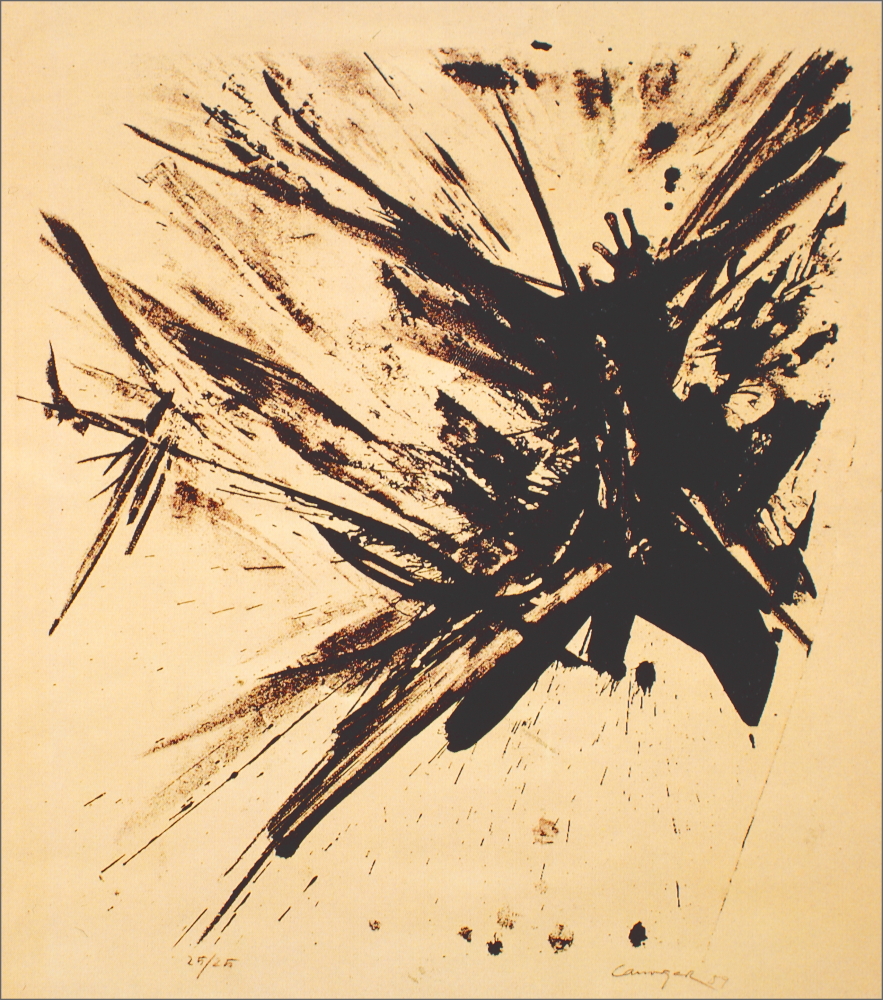 Grabado sobre plancha de polímero, chine-collé e intervención manual