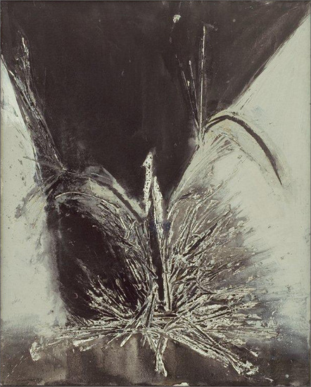 Firmado y fechado zona inf. izda.: “Canogar 59”; firma e inscripción al dorso: “R. Canogar De la serie las tentaciones de San Antonio LA LUJURIA”