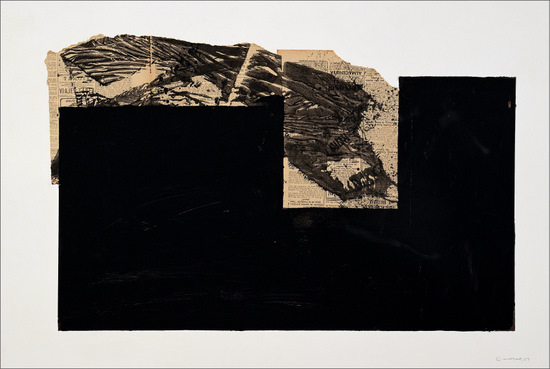 Acrílico y collage de papel de periódico sobre papel