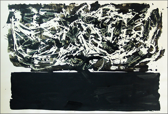 Tinta litográfica y acrílico sobre papel encolado a tabla