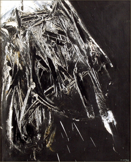 Firmado áng. inf. dcho.: “Canogar”; firma, fecha e inscripción al dorso: “I 26 - II - 2 60 / / Canogar / 1960 / Homenaje a / Velázquez”