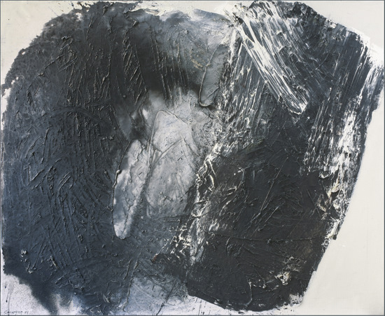 Firmado y fechado áng. inf. izdo.: “Canogar 61”; firma, fecha e inscripición al dorso: “Canogar / 61 / ‘LODO’”