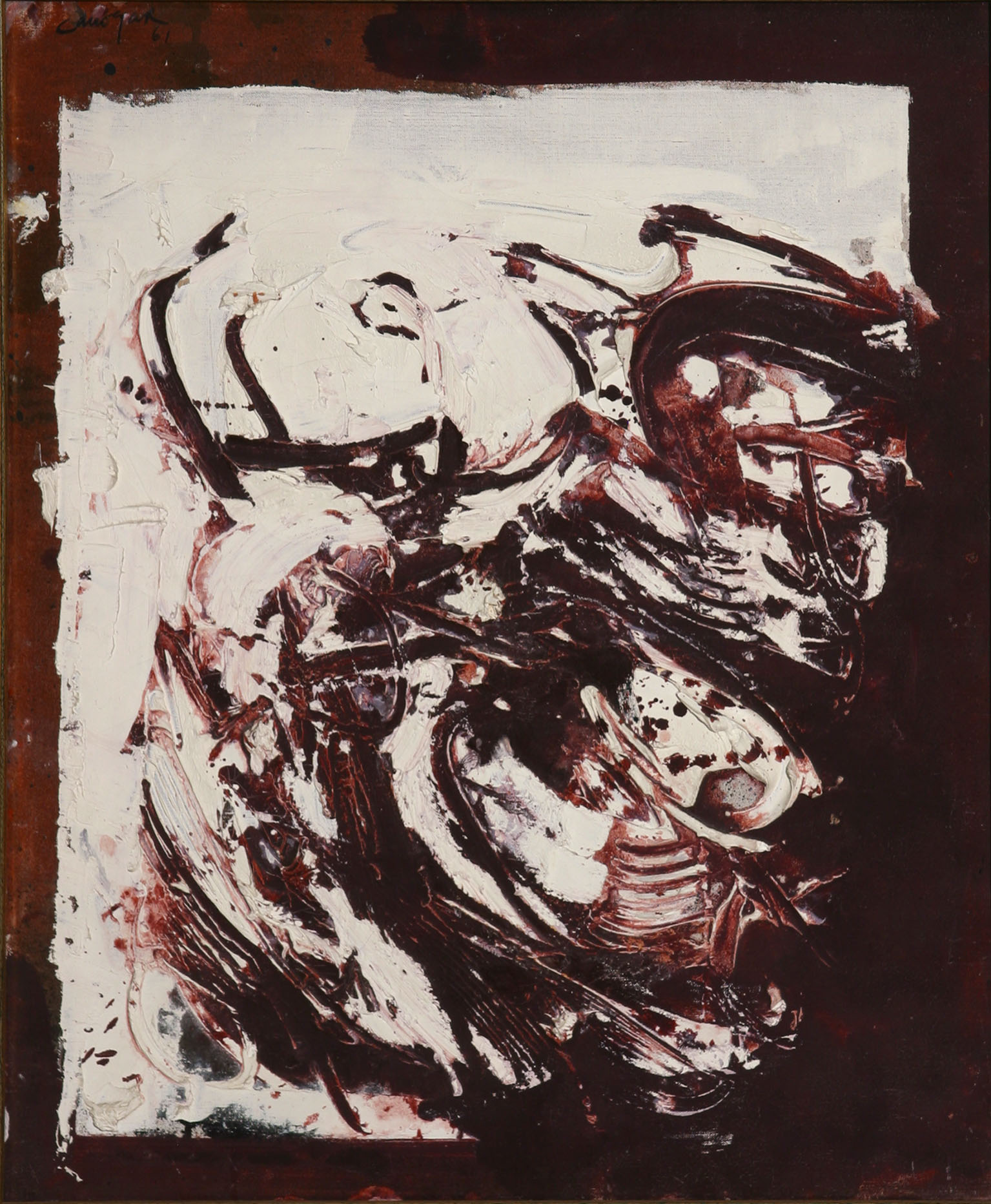 Firmado y fechado áng. sup. izqdo.: “Canogar / 61”. Titulado y firmado al dorso