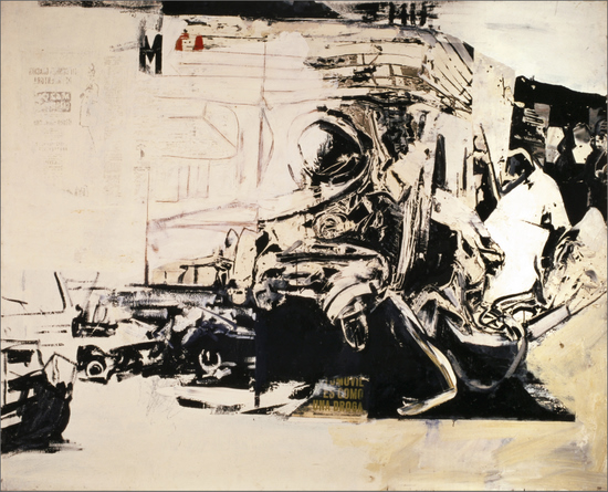 Firmado y fechado zona sup. izda: “Canogar / 63“; firma, fecha e inscripción al dorso: “R. Canogar 1963 / El accidente"