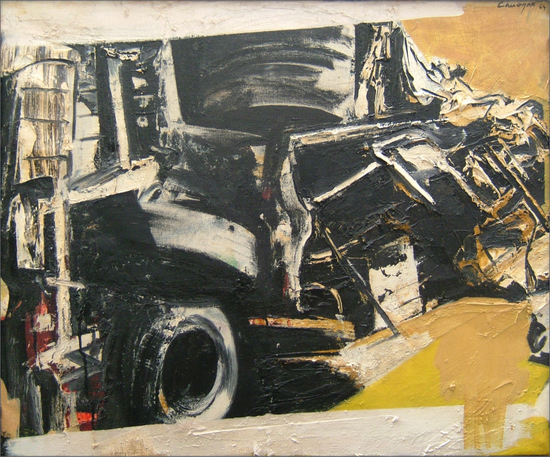 Firmado y fechado áng. sup. dcho.: “Canogar / 64”; inscripción, firma y fecha al dorso: “Accidente / Canogar / 1964”