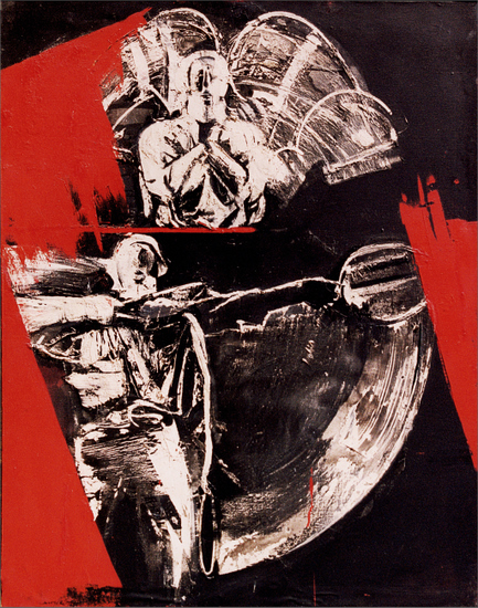 Firmado y fechado zona inf. izda.: “Canogar / 64”; inscripción, firma y fecha al dorso: “Señales aeronáuticas / ‘Tierra’, ‘no / Tierra’ / R. Canogar / 1964”