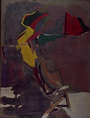 Firmado y fechado áng. inf. dcho.: “66 / Canogar”; firma, fecha e inscripción al dorso: “R. Canogar / 1966 / Composición con figura”
