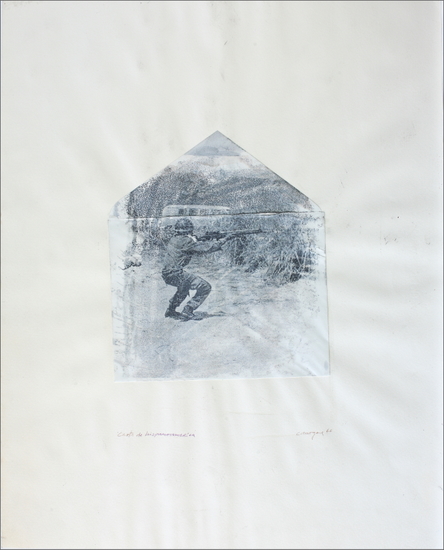 Inscripción zona inf. izda.: “Carta de Hispanoamérica”; fechado y firmado zona inf. dcha.: “66 / Canogar”