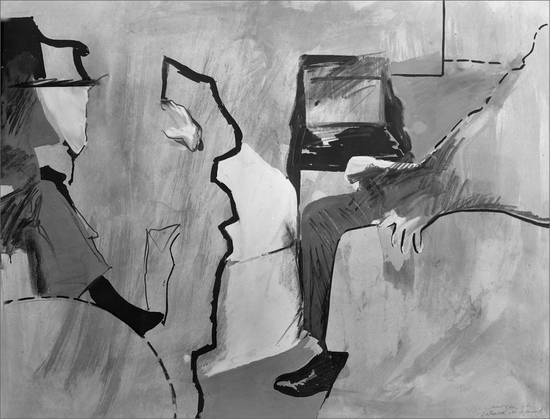 Firma, fecha e inscripción áng. inf. dcho.: “Canogar 66 / Interior con figuras”