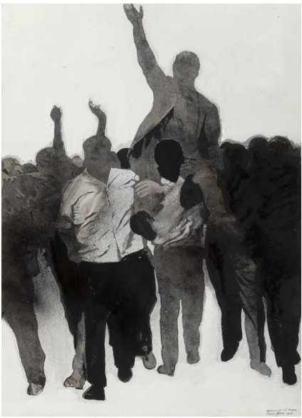 Inscripción, firma y fecha áng. inf. dcho.: “Homenaje al héroe / Canogar 68”