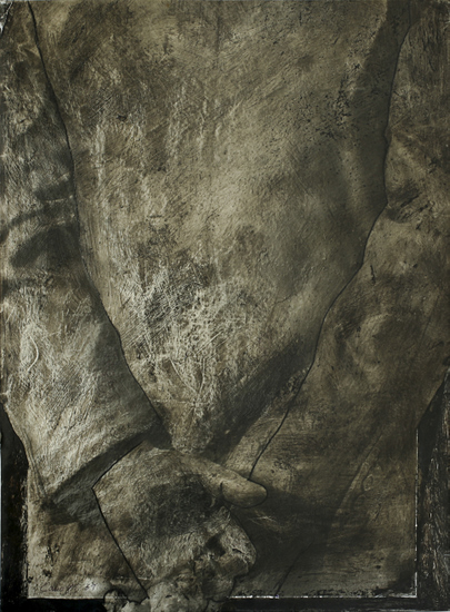 Pintura en spray tratada “a la manera negra” sobre papel metalizado encolado sobre cartón