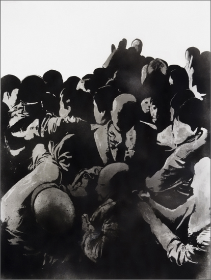 Firma, fecha e inscripción áng. sup. izdo.: “Canogar 69 / El Tumulto”; firma, fecha e inscripción al dorso: “R. Canogar 1969 / ‘EL TUMULTO’”