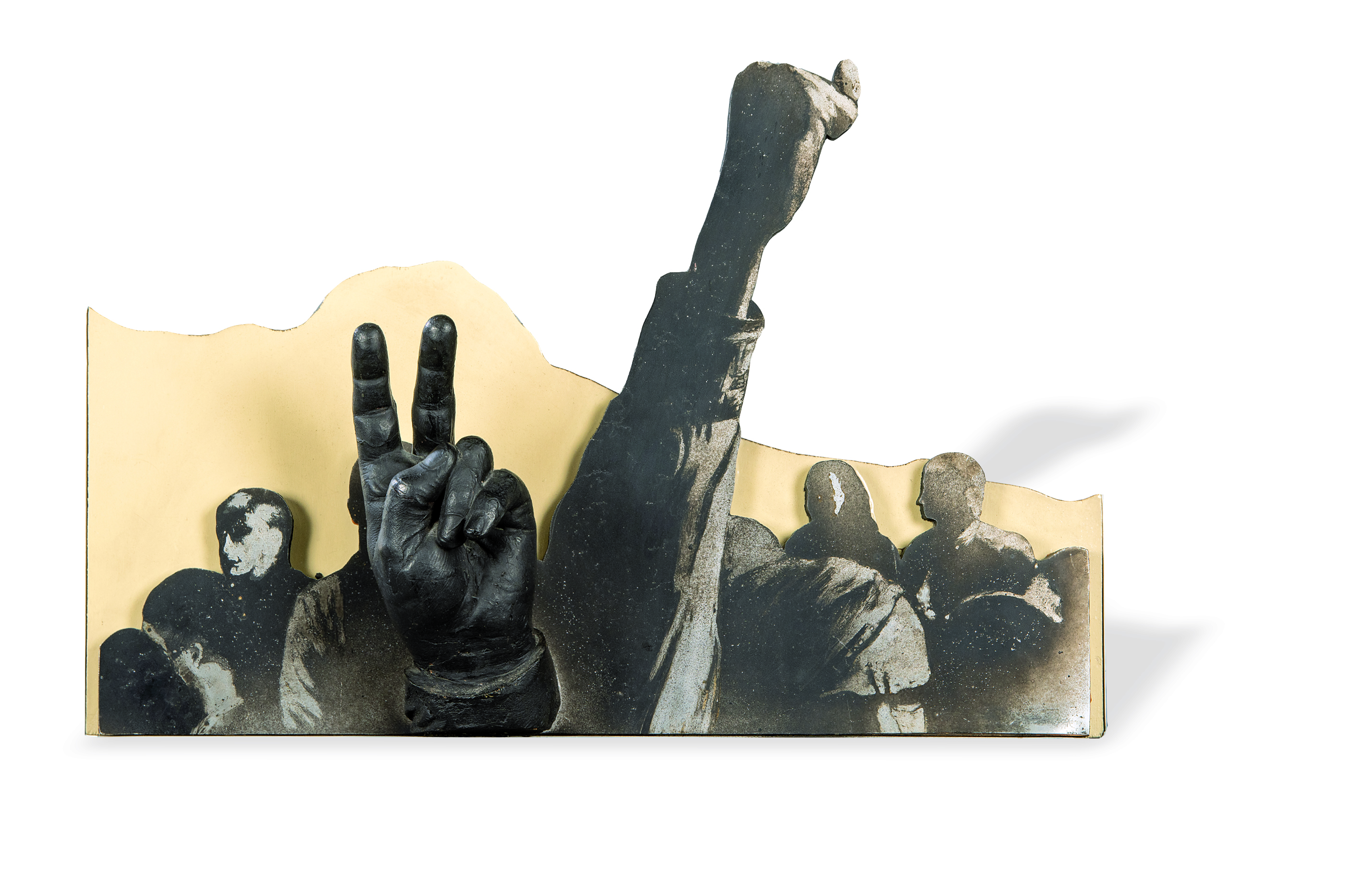 Pintura sobre madera y con ensamblaje de metal