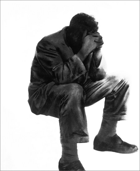 Sanguina, pintura en spray y acrílico sobre lienzo encolado a tabla