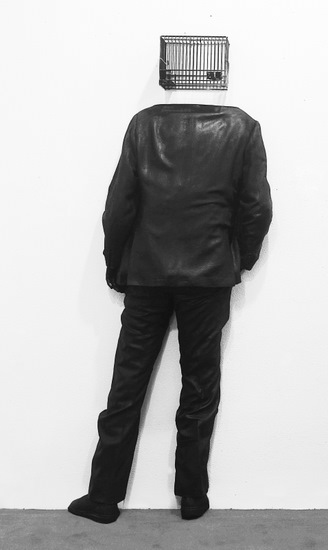 Construcción en poliéster y fibra de vidrio pintada al óleo y jaula de alambre sobre tabla