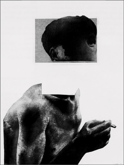 Pintura en spray tratada “a la manera negra” sobre papel metalizado encolado sobre cartón con collag