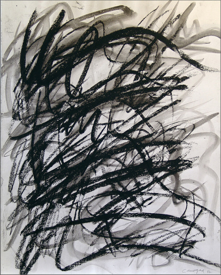 Carboncillo y aguada sobre papel