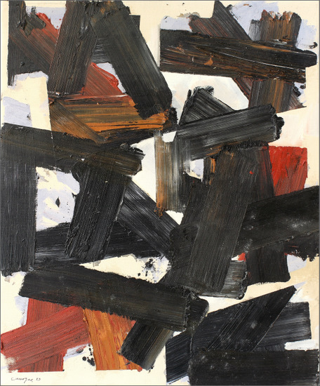 Firmado y fechado zona inf. izda.: “Canogar 83”; firma, fecha e inscripción al dorso : “Canogar 83 / ‘HOJARASCA’”