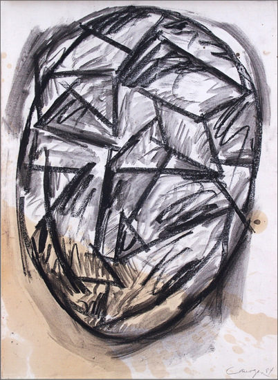 Carboncillo y aguada sobre papel