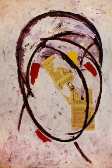 Óleo y collage de papel de periódico sobre lienzo