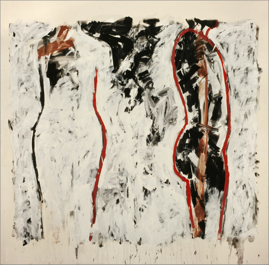 Firmado y fechado zona inf. dcha.: “Canogar 86”; firma, fecha e inscripción al dorso: “Canogar / 86 / ‘DOS FIGURAS’”