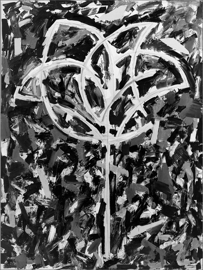 Fechado y firmado zona inf. dcha.: “86 / Canogar”; firma, fecha e inscripción al dorso: “Canogar / 1986 / ‘FLOR BLANCA’”