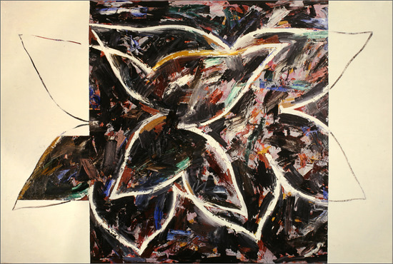Firmado y fechado zona sup. izda.: “Canogar 86”; inscripción, firma y fecha al dorso: “COMPOSICIÓN CON FLORES’ / Canogar 86"