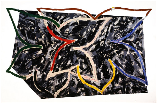 Firmado y fechado áng. inf. dcho.: “Canogar 86”; firma, fecha e inscripción al dorso: “Canogar / 86 / ‘FLORES NEGRAS’”