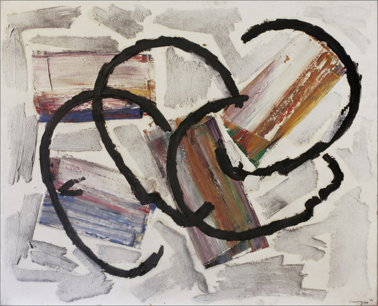 Fechado y firmado áng. inf. dcho.: “90 / Canogar”; firma, fecha e inscripción al dorso: “Canogar – 90 / ‘Escena URbana / Nº XXIV-90’”