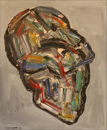 Firmado y fechado zona inf. izda.: “Canogar / 91”; firma, fecha e inscripción al dorso: ‘Canogar 91 / ‘Craneos carnavalescos’”