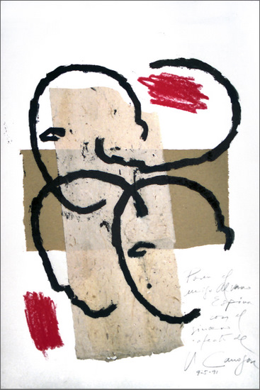 Inscripción, firma y fecha zona inf. dcha.: “Para el / amigo Alvaro / Espino / con el / sincero / afecto de / R. Canogar / 9-5-91”