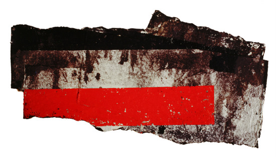 Construcción en papel hecho a mano y pintado al óleo encolado a tabla