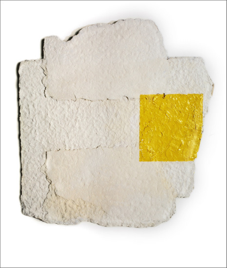 Construcción en papel hecho a mano y pintado al óleo encolado a tabla