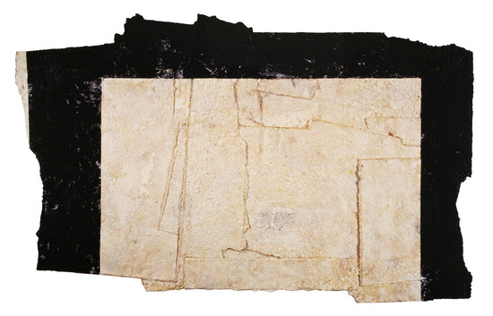 Construcción en papel hecho a mano y pintado al óleo encolado a tabla