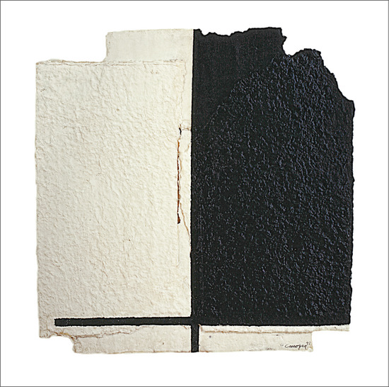 Construcción en papel hecho a mano y pintado al óleo encolado a tabla