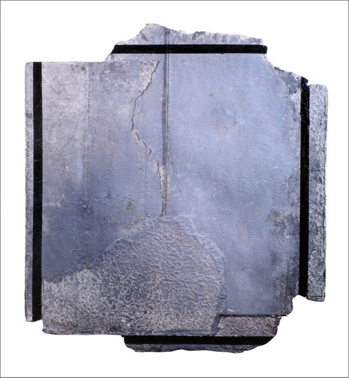 Construcción en papel hecho a mano y pintado al óleo encolado a tabla