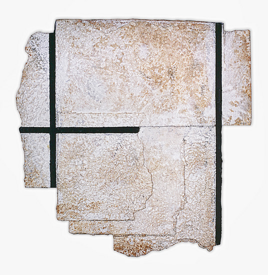 Construcción en papel hecho a mano y pintado al óleo encolado a tabla