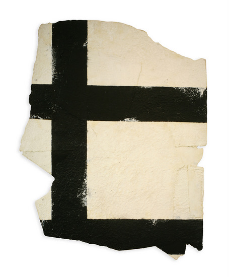 Construcción en papel hecho a mano y pintado al óleo encolado a tabla
