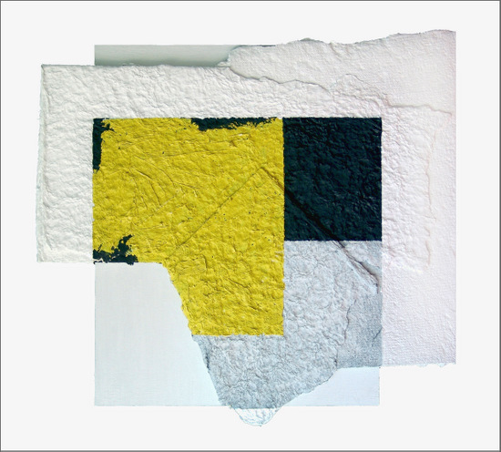 Construcción en papel hecho a mano y pintado al óleo encolado a tabla