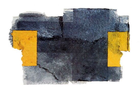 Construcción en papel hecho a mano y pintado al óleo encolado a tabla