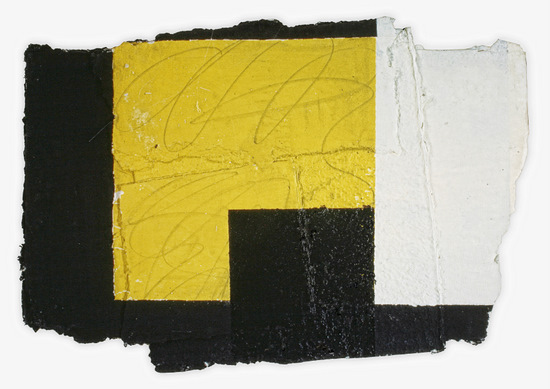 Construcción en papel hecho a mano y pintado al óleo con trazos de lápiz encolado a tabla