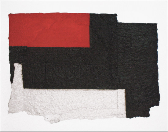Construcción en papel hecho a mano y pintado al óleo encolado a tabla