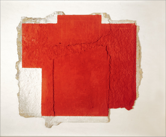Construcción en papel hecho a mano y pintado al óleo encolado a tabla