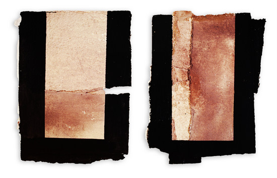 Construcción en papel hecho a mano y pintado al óleo encolado a tabla
