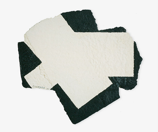 Construcción en papel hecho a mano y pintado al óleo encolado a tabla