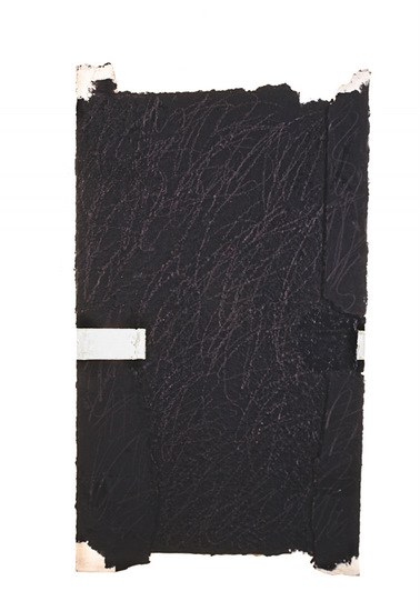 Construcción en papel hecho a mano y pintado al óleo encolado a tabla