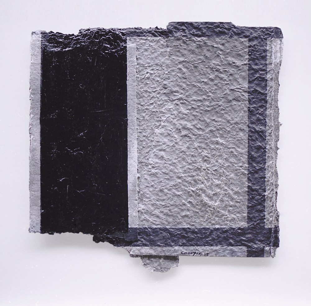 Construcción en papel hecho a mano y pintado al óleo encolado a tabla